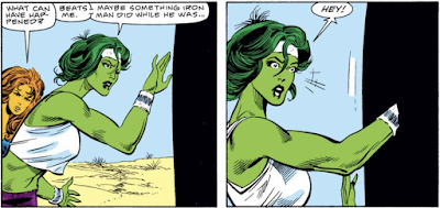 DeleteI don’t have anything more to add on that front, but I just took another virtual flip through the issue and I almost laughed out loud again at Tigra’s determination to help She-Hulk get free of the black sphere by applying their “combined strength”. ’Cause when Hulk-level power isn’t enough you naturally think “if only we had the combined strength of the Hulk and Tigra at our disposal…”.